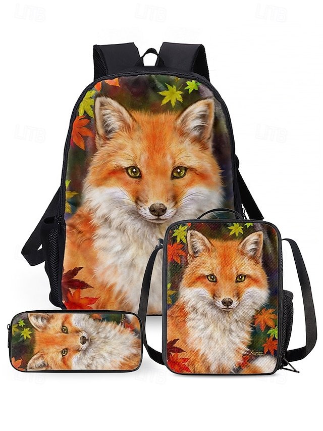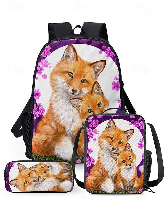 Girls’3-Piece Fox Backpack Set with Lunch Bag and Pencil