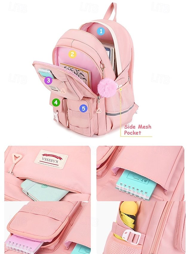 Gender: Boys’, Girls’, Kid’s, Type: School Bag Bookbag, School Backpack Bookbag, Material: Nylon, Oxford Cloth, Embellishment: Zipper, Pendant, Pattern: Solid Color, Occasion: School, Daily, Width (cm): 32, Height (cm): 47, Length (cm): 19, Function: Waterproof, Lightweight, Large Capacity, Category: Backpack,