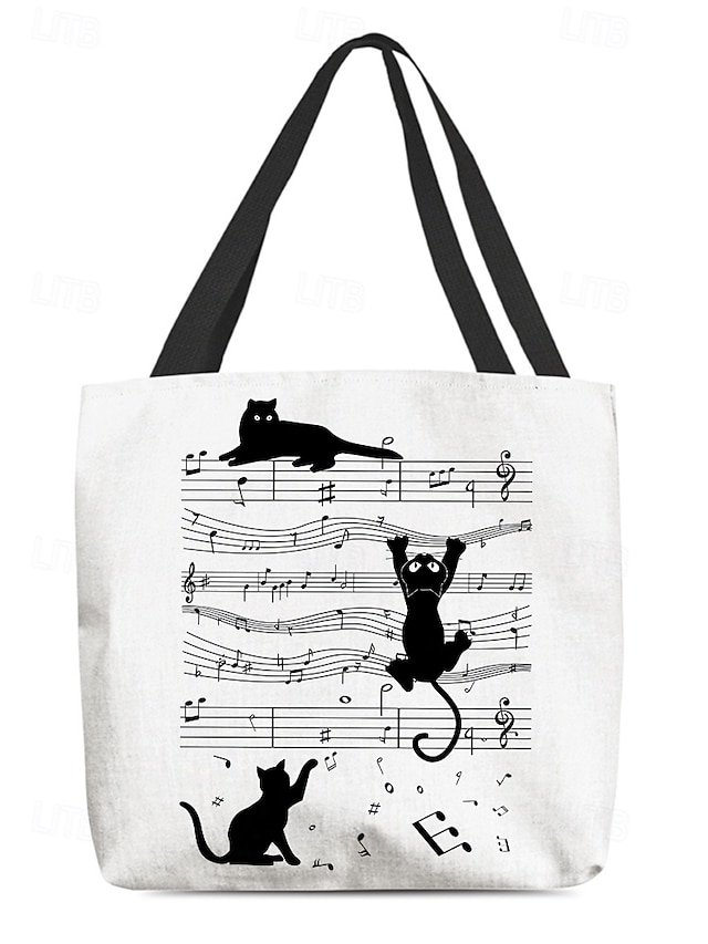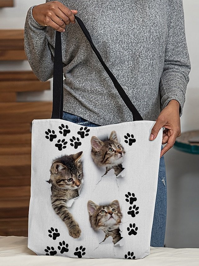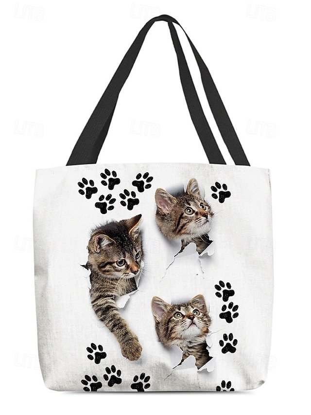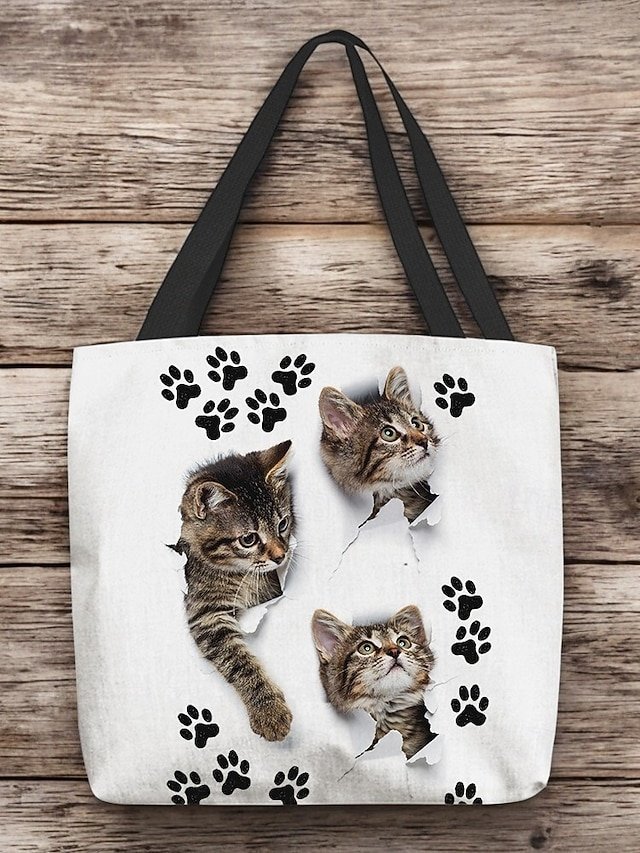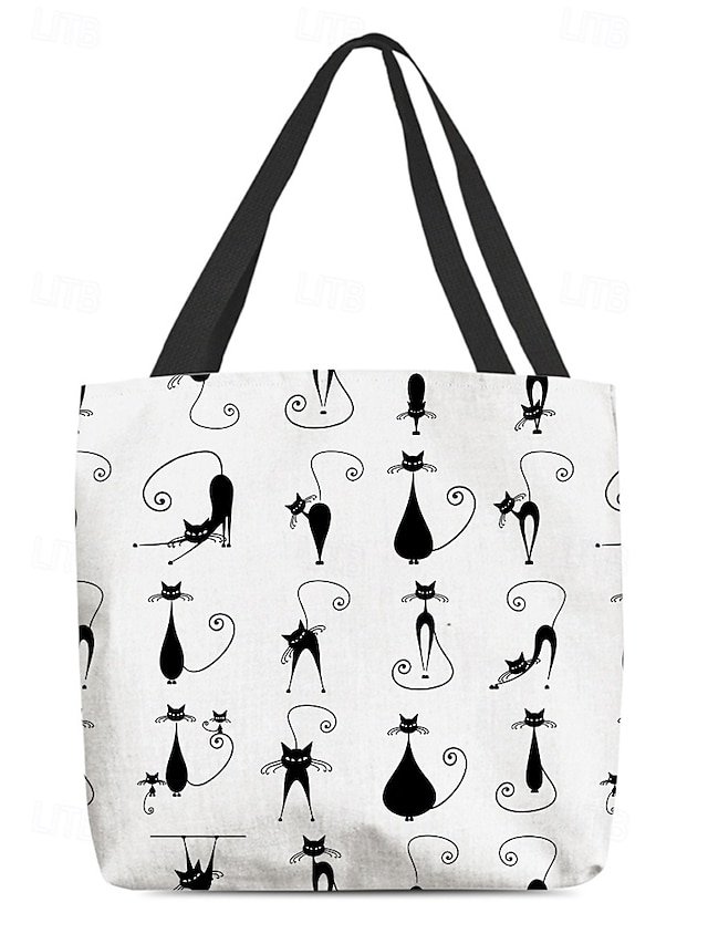 Gender: Women’s, Type: Canvas Tote Bag, Material: Polyester, Embellishment: Print, Pattern: Cat, Detachable strap: Non-Detachable, Adjustable strap: Non-Adjustable, Occasion: Casual Daily, Shopping, Width (cm): 1, Height (cm): 45, Length (cm): 45, Function: Lightweight, Foldable, Large Capacity, Category: Tote,