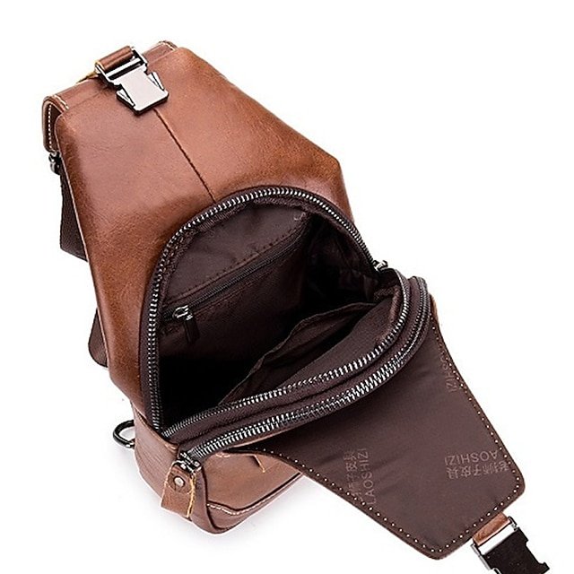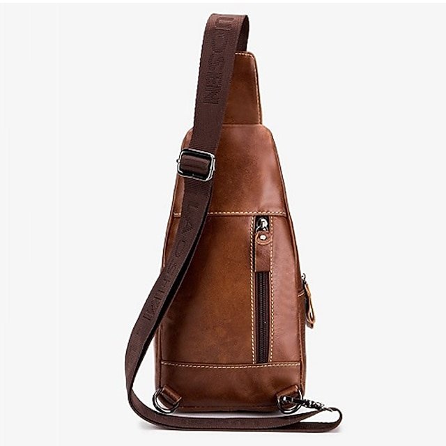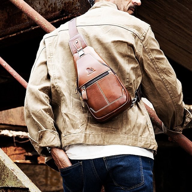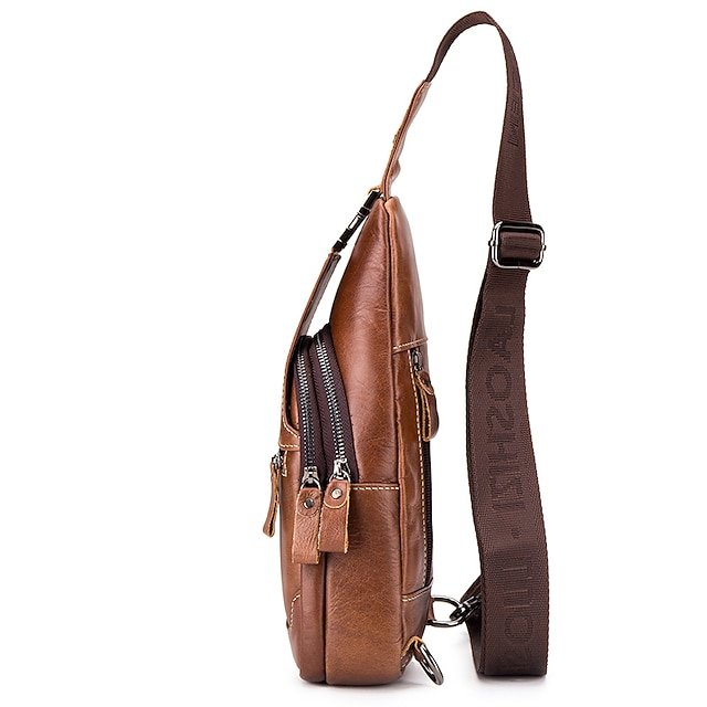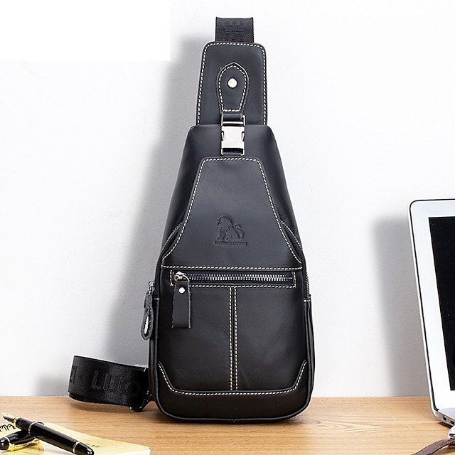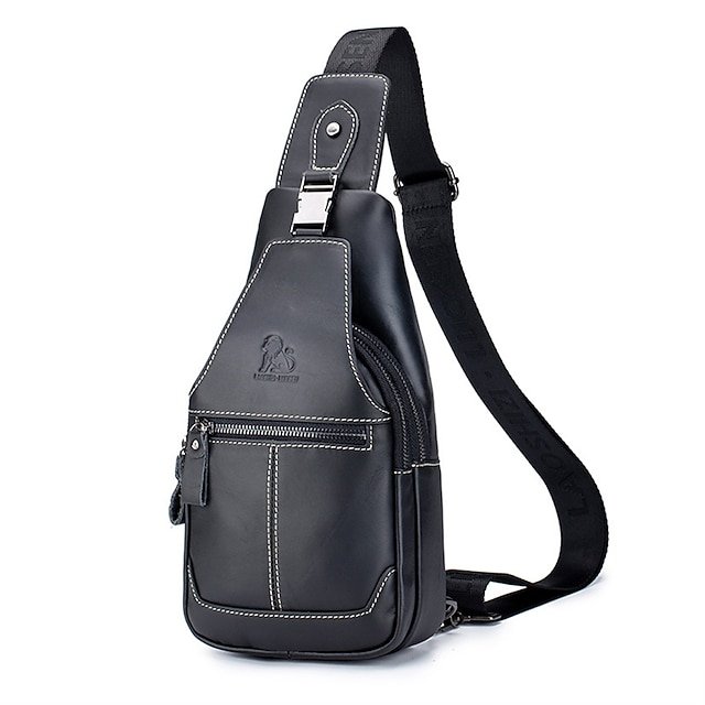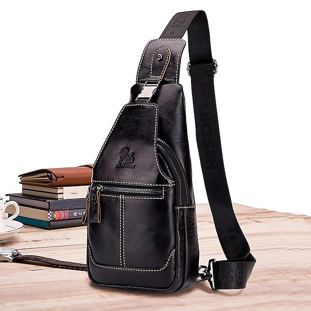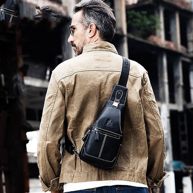 Men’s Crossbody Bag Chest Bag Nappa Leather Outdoor Daily