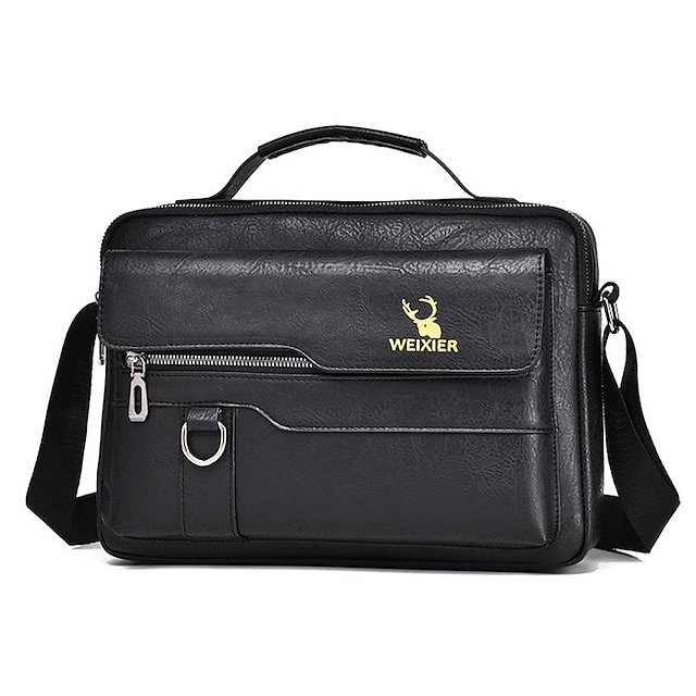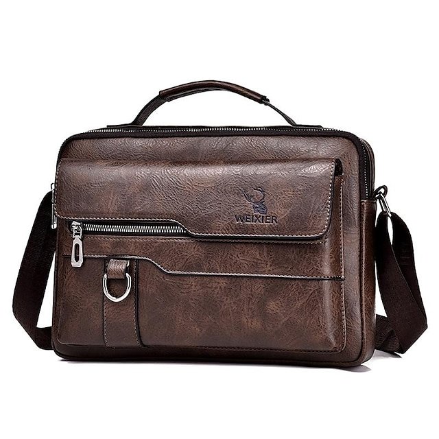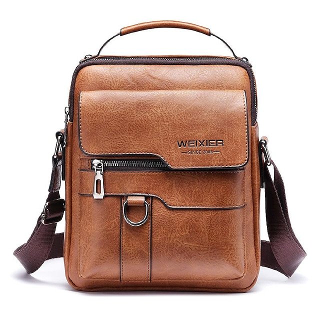 Gender: Men’s, Type: Messenger Bag, Material: PU Leather, Embellishment: Zipper, Pattern: Solid Color, Occasion: Daily, Office, Width (cm): 8, Height (cm): 26, Length (cm): 22, Function: Waterproof, Large Capacity, Durable, Category: Shoulder Bag,