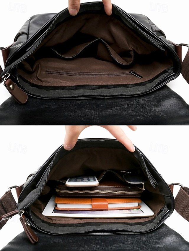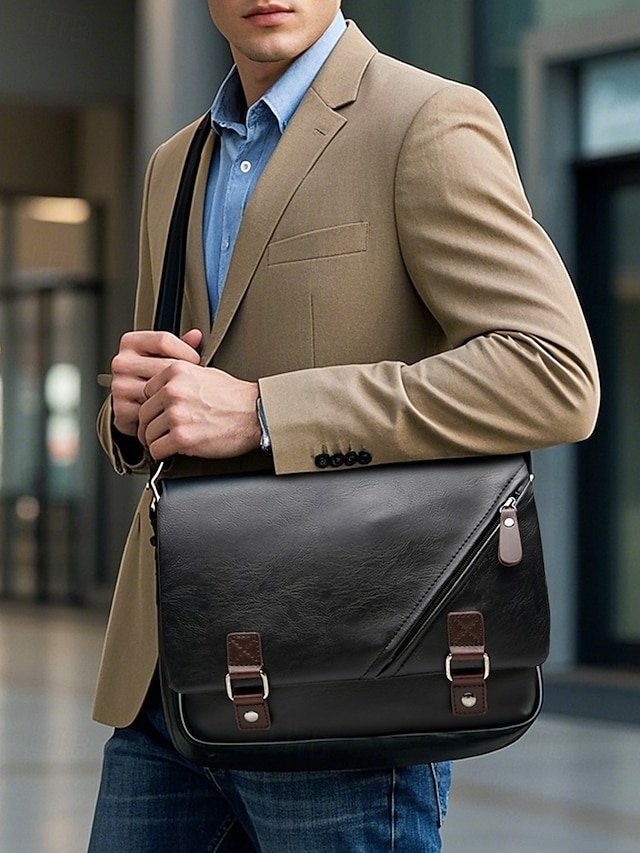 Gender: Men’s, Type: Satchel, Laptop Bag, Material: PU Leather, Embellishment: Zipper, Pattern: Solid Color, Detachable strap: Non-Detachable, Adjustable strap: Adjustable, Occasion: Office, Casual Daily, Width (cm): 8, Height (cm): 22, Length (cm): 29, Function: Waterproof, Large Capacity, Category: Crossbody Bag,