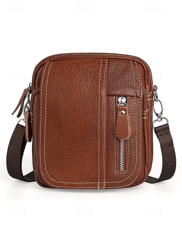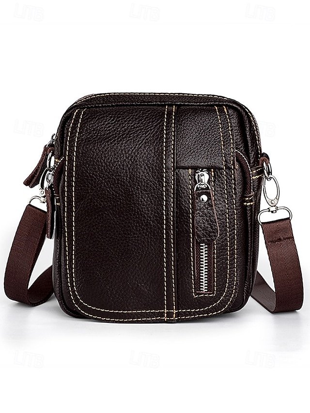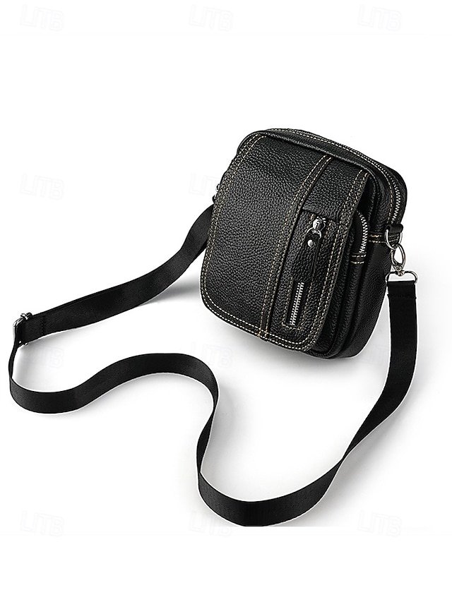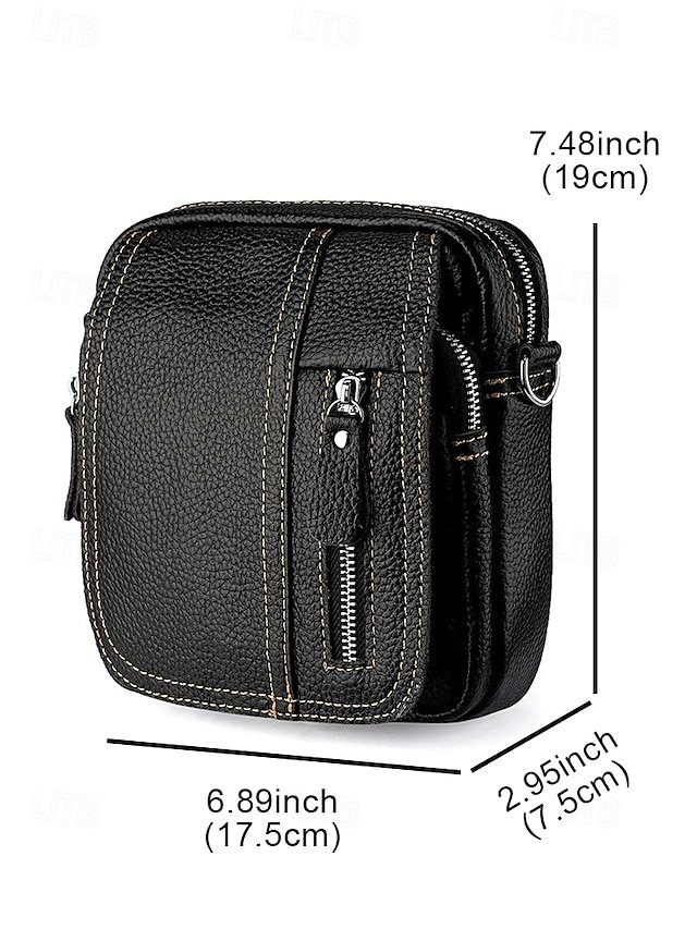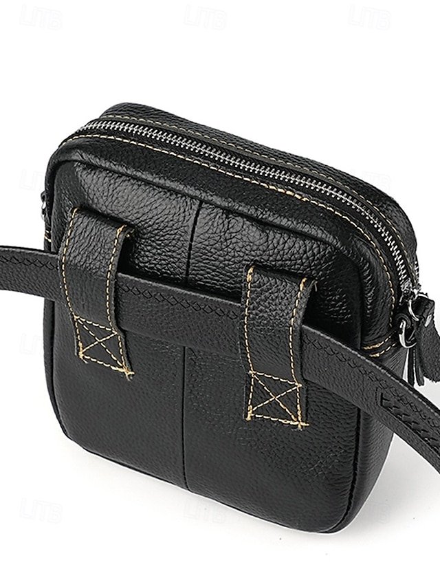 Gender: Men’s, Type: Fanny Pack, Belt Bag, Material: Cowhide, Leather, Embellishment: Zipper, Multiple pockets, Pattern: Solid Color, Detachable strap: Detachable, Adjustable strap: Adjustable, Occasion: Office, Outdoor, Casual, Daily, Width (cm): 7.5, Height (cm): 19, Length (cm): 17.5, Function: Large Capacity, Durable, Multi Carry, Category: Crossbody Bag,