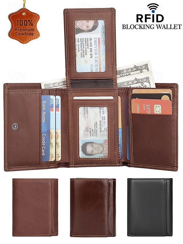RFID Blocking Genuine Leather Wallet for Men – Trifold Design