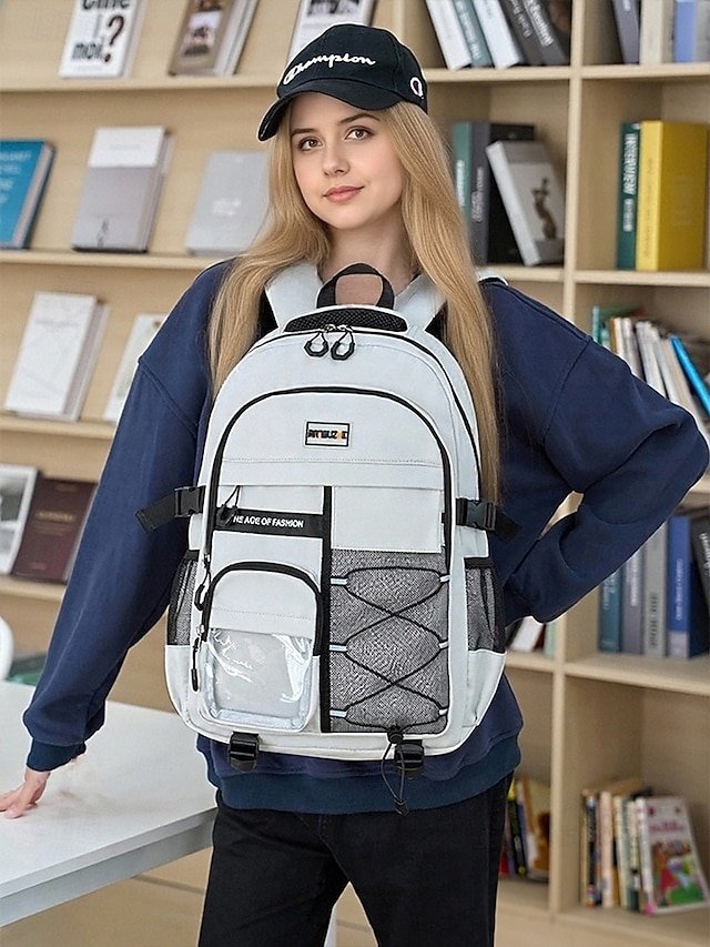 Gender: Women’s, Men’s, Type: School Bag Bookbag, Commuter Backpack, School Backpack Bookbag, Material: Polyester, Oxford Cloth, Embellishment: Zipper, Pattern: Solid Color, Color Block, Occasion: Daily, School, Width (cm): 30, Height (cm): 46, Length (cm): 40, Function: Waterproof, Large Capacity, Category: Backpack,