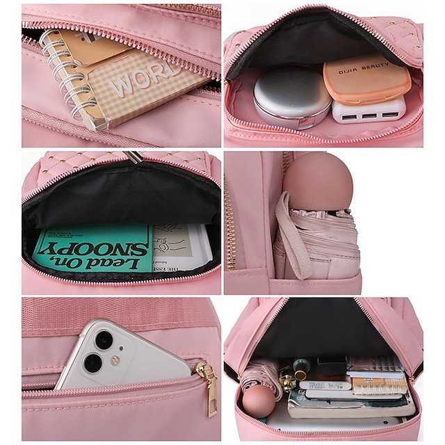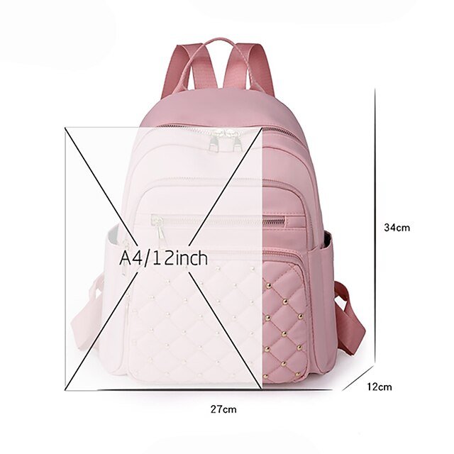 Gender: Women’s, Type: School Bag Bookbag, Commuter Backpack, Material: Nylon, Embellishment: Rivet, Zipper, Occasion: School, Daily, Width (cm): 27, Height (cm): 34, Function: Waterproof, Lightweight, Large Capacity, Durable, Category: Backpack,