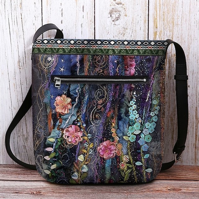 Women’s Bohemian Floral Embroidered Crossbody Bag, Artistic