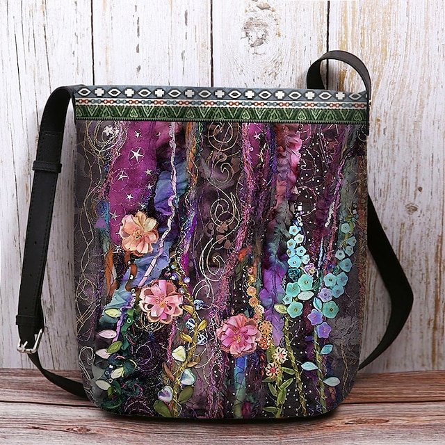 Gender: Women’s, Type: Bucket Bag, Crossbody Bag, Shoulder Bags, Material: Polyester, Embellishment: Print, Pattern: Flower, Detachable strap: Non-Detachable, Adjustable strap: Adjustable, Occasion: Daily, Shopping, Width (cm): 4, Height (cm): 28, Length (cm): 25, Function: Lightweight, Large Capacity, Durable, Category: Crossbody Bag,