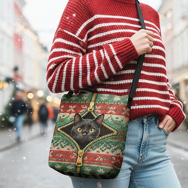Gender: Women’s, Type: Bucket Bag, Shoulder Bags, Material: Polyester, Embellishment: Print, Pattern: Gingerbread Man, Christmas Tree, Santa Claus, Cat, Detachable strap: Non-Detachable, Adjustable strap: Adjustable, Occasion: Casual Daily, Christmas, Casual, Shopping, Width (cm): 4, Height (cm): 28, Length (cm): 25, Function: Lightweight, Large Capacity, Durable, Category: Crossbody Bag,