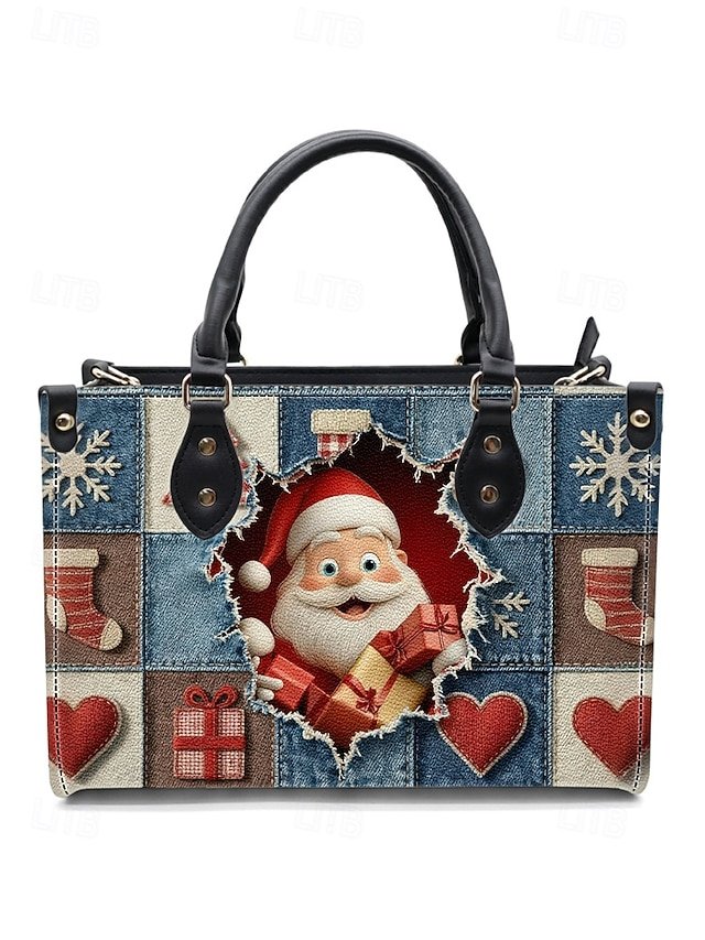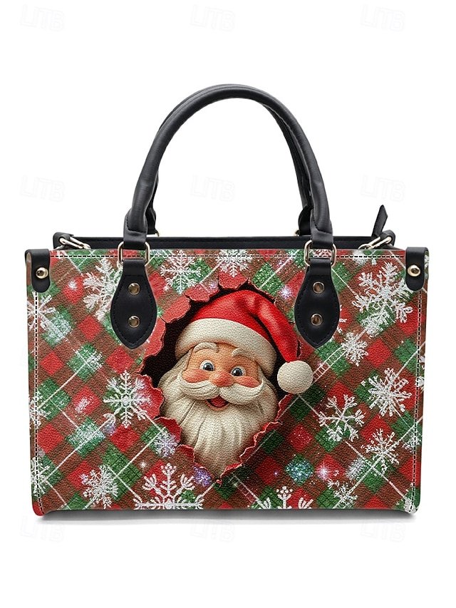 Women’s Christmas Tote Bag – Faux Leather, Santa and