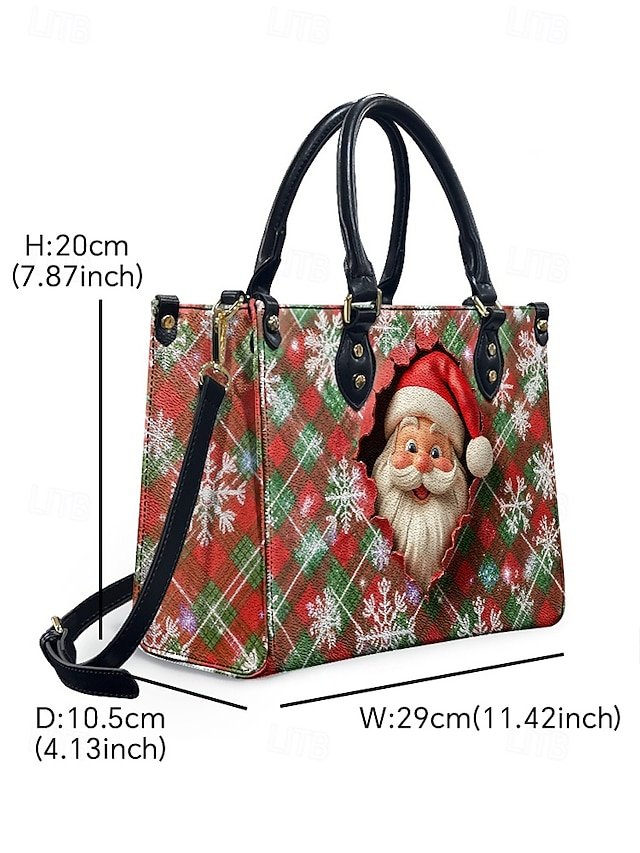 Gender: Women’s, Type: Crossbody Bag, Boston Bag, Shoulder Bags, Material: PU Leather, Embellishment: Print, Pattern: Santa Claus, Detachable strap: Detachable, Adjustable strap: Adjustable, Occasion: Casual Daily, Christmas, Casual, Holiday, Width (cm): 10.5, Height (cm): 20, Length (cm): 29, Function: Large Capacity, Multi Carry, Category: Handbag,
