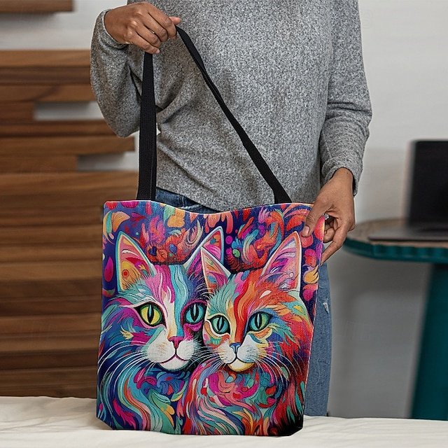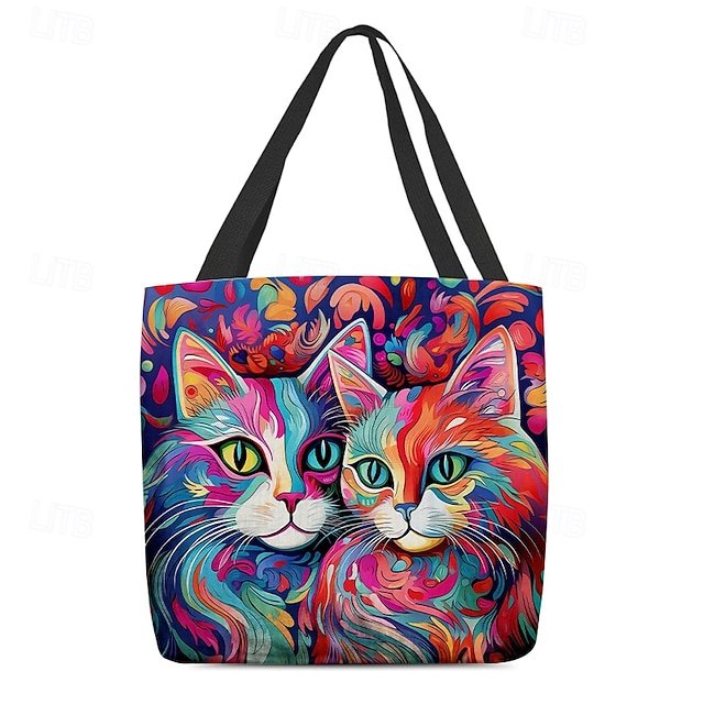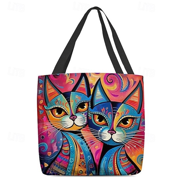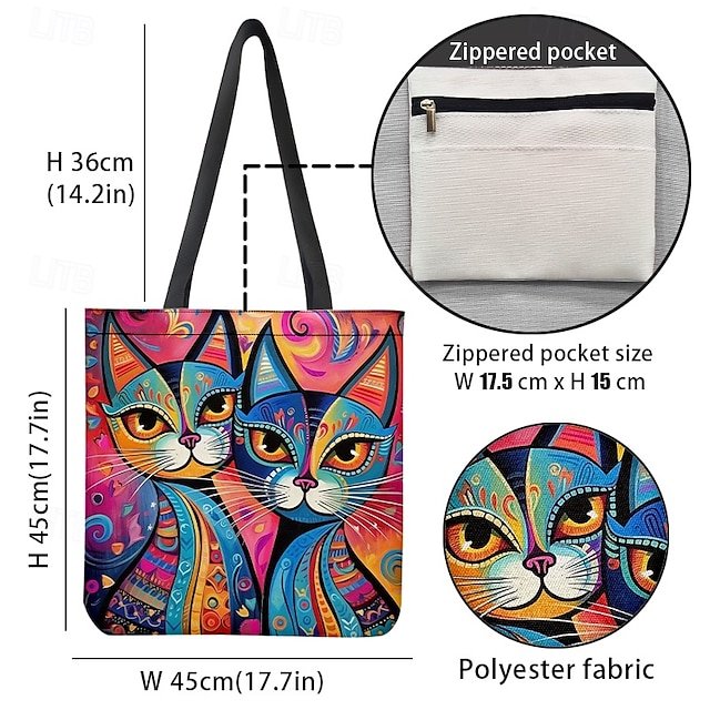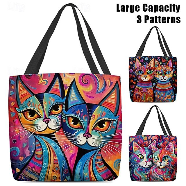 Gender: Women’s, Type: Canvas Tote Bag, Material: Polyester, Embellishment: Print, Pattern: Cat, Detachable strap: Non-Detachable, Adjustable strap: Non-Adjustable, Occasion: Casual Daily, Shopping, Width (cm): 1, Height (cm): 45, Length (cm): 45, Function: Lightweight, Foldable, Large Capacity, Category: Tote,