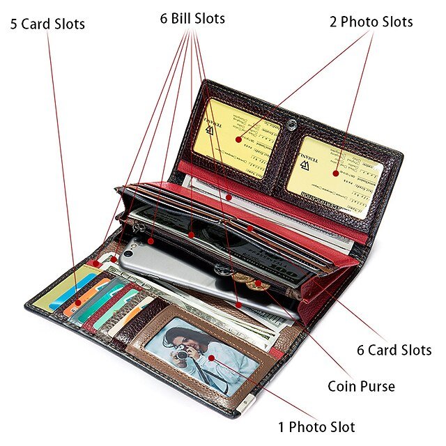 Gender: Women’s, Type: Credit Card Holder Wallet, Material: Cowhide, Embellishment: Embroidery, Pattern: Color Block, Patchwork, Occasion: Shopping, Daily, Width (cm): 2, Length (cm): 8.5, Height (cm): 18.5, Function: Large Capacity, Durable, Lightweight, Category: Wallet,