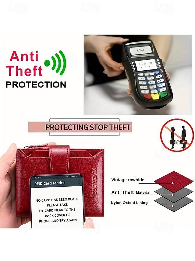Women's Vintage Red Leather RFID-Blocking Wallet -