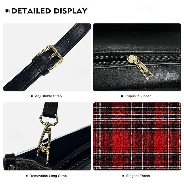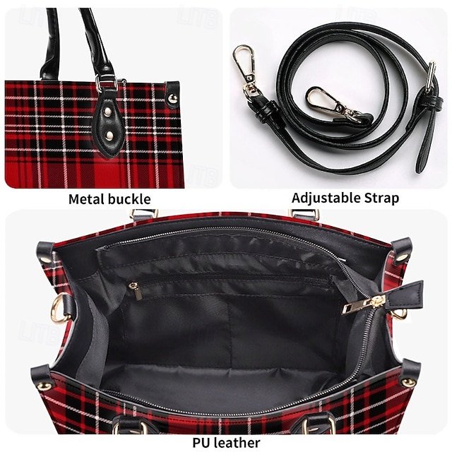 Gender: Women’s, Type: Crossbody Bag, Boston Bag, Shoulder Bags, Material: PU Leather, Embellishment: Print, Pattern: Plaid, Detachable strap: Detachable, Adjustable strap: Adjustable, Occasion: Daily, Holiday, Shopping, Width (cm): 10.5, Height (cm): 20, Length (cm): 29, Function: Large Capacity, Multi Carry, Category: Handbag,