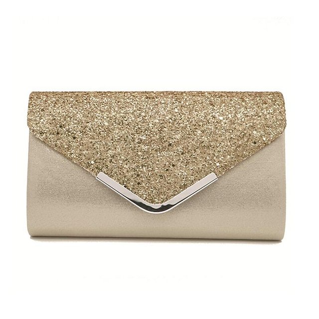 Women's Glitter Evening Clutch Bag – Sparkly Gold Handbag