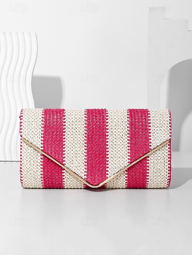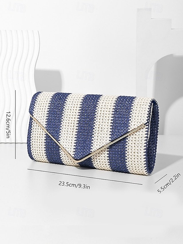 Gender: Women’s, Type: Crossbody Bag, Shoulder Bags, Material: Straw, PU Leather, Embellishment: Chain, Pattern: Striped, Detachable strap: Detachable, Adjustable strap: Non-Adjustable, Occasion: Beach, Casual Daily, Width (cm): 5, Height (cm): 12, Length (cm): 23, Function: Multi Carry, Category: Clutch,